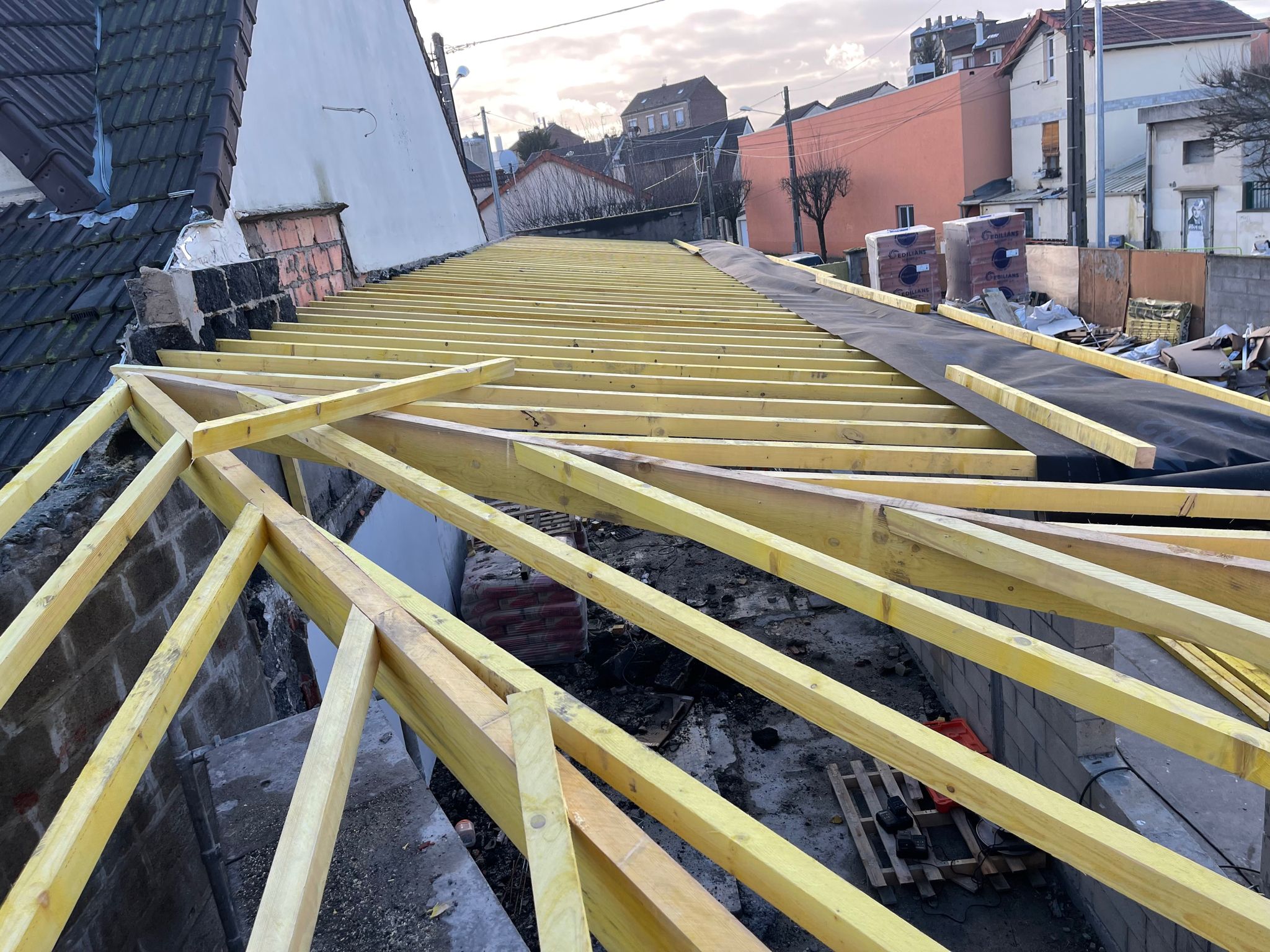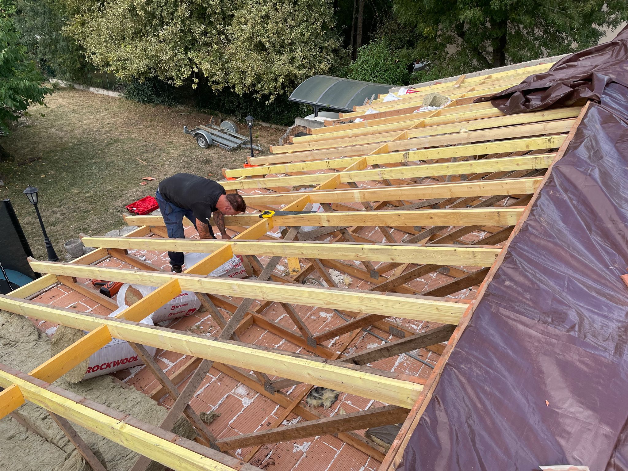5️⃣ Pose de charpente traditionnelle