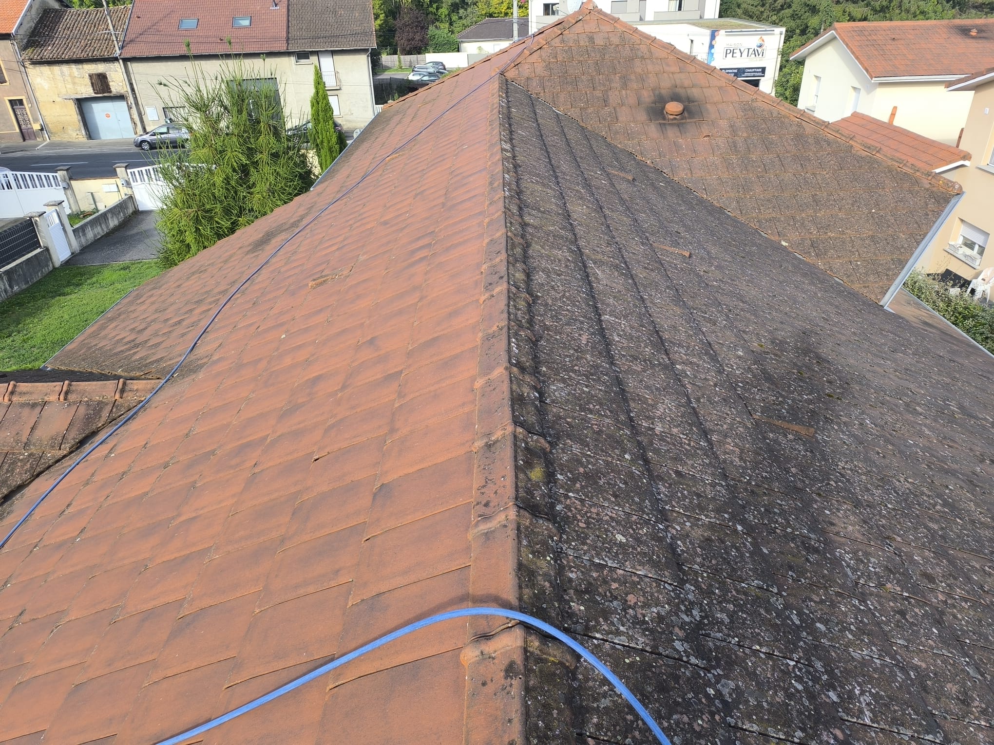 Nous procédons à un nettoyage complet et minutieux de votre toiture afin d’éliminer toutes les impuretés : mousses, lichens, algues, traces noires, dépôts de pollution et salissures incrustées. Ces végétaux retiennent l’humidité et fragilisent vos tuiles ou ardoises, pouvant provoquer fissures et infiltrations.